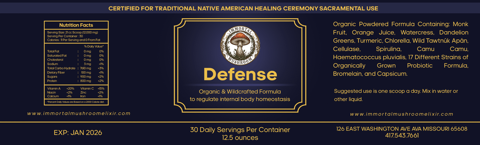 Defense Ingredients: See the full list below of the powerful supplement of greens, probiotics, and mushroom.