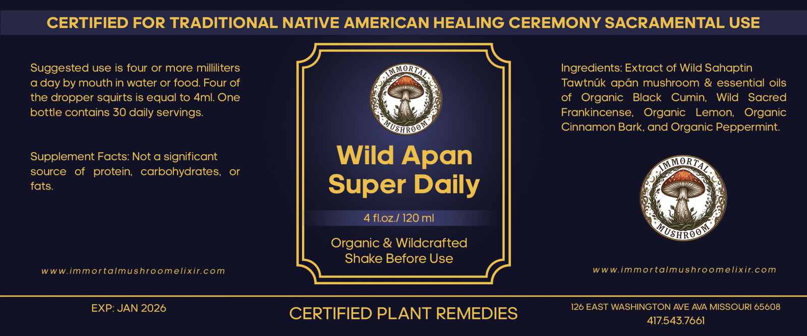 The Apán supplement contains the synergized ingredients of the wild crafted Native American mushroom of Apán and the organic essential oils of Black Cumin, Lemon, Cinnamon Bark, and Peppermint. Each of these ingredients has been demonstrated in scientific research to have powerful effects on healing the body.